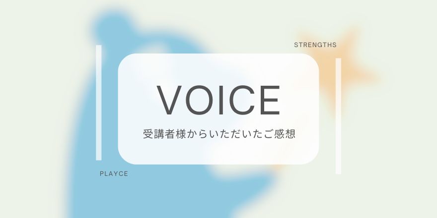 改めて、⾃分と他者との違いの⾯⽩さに気づく事が出来ました。他社との違いを受け⼊れると⾃分のストレスの軽減に繋がります。グループワークの時間が楽しかったです。今後クリフトンストレングス®を、家族間の接し⽅に活かしていきたい。 夫々の個性・思いを尊重していきたいです。